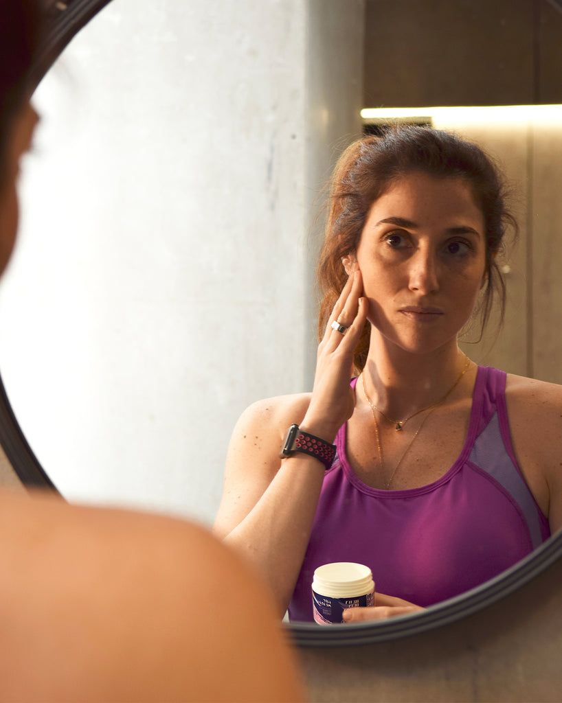 Ingredientes: Creme ultra hidratante e nutritivo, muito rico em ativos vegetais, água de perpétua roxa, extratos de videira, arroz hidrolisado, óleo de andiroba e óleo de tamanu enriquecido com ácido hialurónico, vitamina E e esqualeno obtido da oliva. 99% de origem natural e vegetal. Sem perfume.